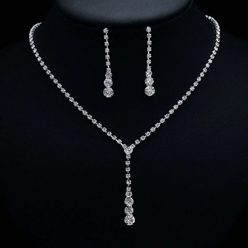 price cut TREAZY Silver Color Simple Crystal Bridal Jewelry Sets Long Drop Necklace Earrings Bracelet Set for